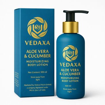 Vedaxa Aloe Vera & Cucumber Moisturizing Body Lotion is a refreshing, lightweight formula enriched with pure Aloe Vera and cooling Cucumber extract. It deeply hydrates, soothes dryness, and restores skin softness. Fast-absorbing and non-greasy, it leaves skin smooth, calm, refreshed, and naturally healthy all day.