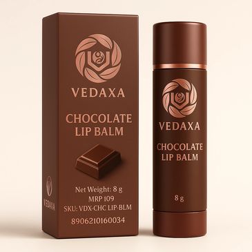 Vedaxa Chocolate Lip Balm is a rich, nourishing lip care formula infused with Cocoa Butter, Shea Butter, Beeswax, and Vitamin E. It deeply hydrates, repairs dry lips, and seals in long-lasting moisture. The creamy texture glides smoothly, leaving lips soft, supple, and naturally glossy with a comforting, indulgent chocolate aroma.