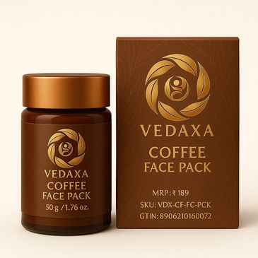 Vedaxa Coffee Face Pack is an energizing herbal skincare formula enriched with pure Coffee Extract, natural clays, Aloe Vera, and Vitamin E. It deeply cleanses pores, removes dead skin cells and impurities, and helps reduce dullness and fatigue. The antioxidant-rich blend boosts circulation, refreshes the skin, and leaves it smooth, clear, revitalized, and naturally glowing with regular use.