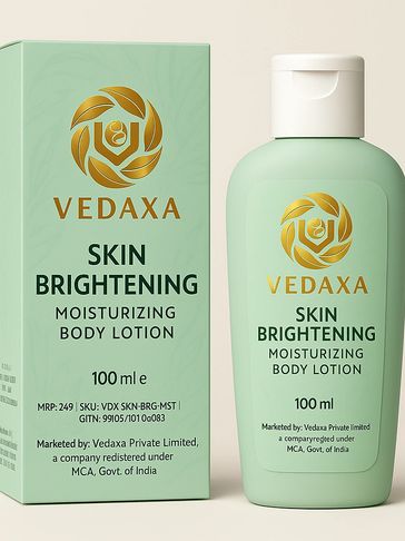 Vedaxa Skin Brightening Moisturizing Body Lotion blends Vitamin C, Niacinamide, Aloe Vera, and Shea Butter to hydrate deeply and enhance natural radiance. Its lightweight, fast-absorbing formula reduces dullness, evens tone, and softens skin without greasiness. Daily use strengthens the moisture barrier, improves smoothness, and leaves skin visibly brighter, supple, refreshed, and healthy-looking all day with lasting comfort daily.