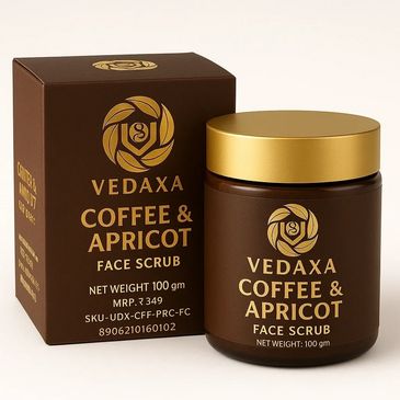 Vedaxa Coffee & Apricot Face Scrub is a revitalizing exfoliating formula enriched with Coffee Extract, Apricot granules, Aloe Vera, and Vitamin E. It gently removes dead skin cells, unclogs pores, and reduces dullness while boosting circulation. Regular use leaves skin smoother, refreshed, and naturally glowing.